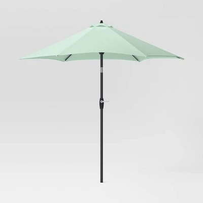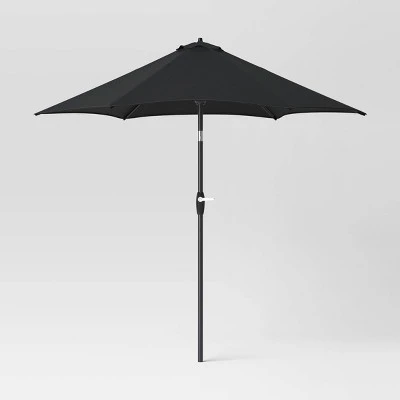 This 9-Foot x 9-Foot Patio Market Umbrella from Room Essentials™ will add style and cozy shade to your patio setup. Made with fade-resistant fabric in a solid hue, it makes an easy pairing with any patio decor scheme. It’s supported by a steel frame and is compatible with centered pole umbrella bases (sold separately), and the crank lift and push-button tilt let you easily adjust the umbrella to keep everybody in the shade.