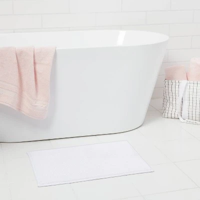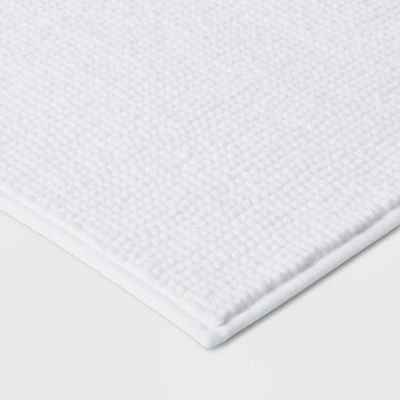 Bring a comfy, cozy feeling to your everyday routine with this Everyday Chenille Bath Rug from Room Essentials™. The plush, looped pile feels great on your feet, while its ultra-absorbent tufted construction protects your floors from dripping water while you’re stepping out of the shower or getting ready by the sink. Featuring a simple chenille design in a solid hue, this rectangular bath rug easily blends with your existing decor, while the machine-washable design makes for easy maintenance.